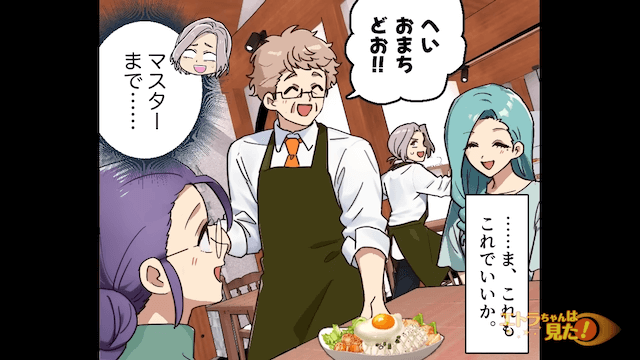 筋トレにハマってどんどん筋肉質になり、食事の大切さにも気づいた女性客。 そして主人公とマスターは、大賑わいの店内で今日も元気よく働くのでした。
