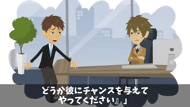 上司は説明を終えてから「どうだ?なかなかうまくできてるだろ?」と主人公に言いました。 それに対し主人公は「遅刻はともかく、やっていないことまで俺のせいにするなんて、あんまりですよ!」と言い…。