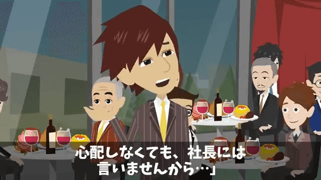 上司は主人公が余計なことを話さないよう監視すると言いました。 主人公はそんな上司に「心配しなくても、社長には言いませんから…」と伝えますが…。