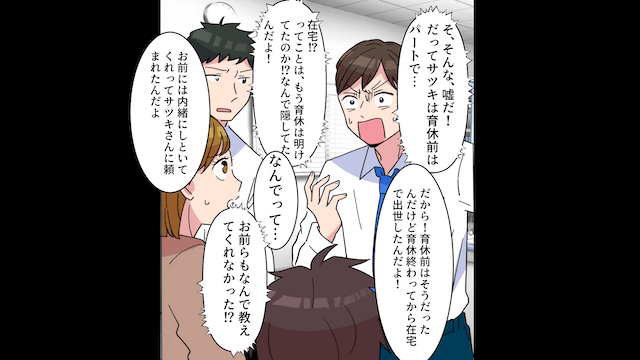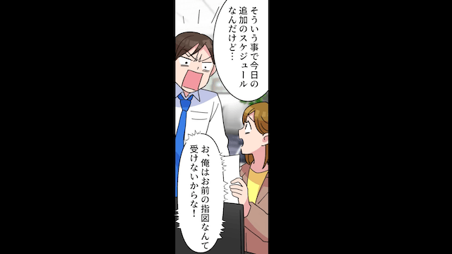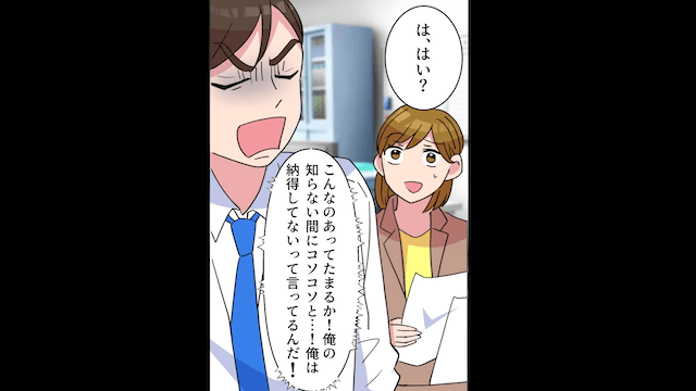 同僚から主人公が課長に昇進したことを聞いた夫は「ええぇぇえ!?」と驚愕しました。 そして主人公の昇進に納得できない夫は、主人公からの指示を拒否したのです。