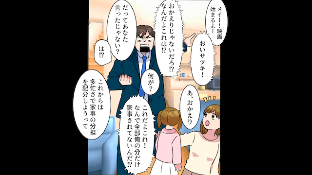 主人公の謝罪のおかげで担当者に許してもらった後、夫は他の社員たちの前で課長に叱られ、恥ずかしい思いをしました。 さらに帰宅後、夫は今までしていなかった家事をすることになり、悔しい思いをしたのです。