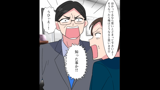 今回は『産休明けで夫と同じ会社に復帰したら…夫「パート頑張れ(笑)」私「何言ってるの?」⇒正体を明かした結果』を紹介します。 夫を自らの手で制裁するため、現場に駆けつけた主人公。 課長も「私が証人になる」と言い、夫は「そ、そんな…」とショックを受けて…。