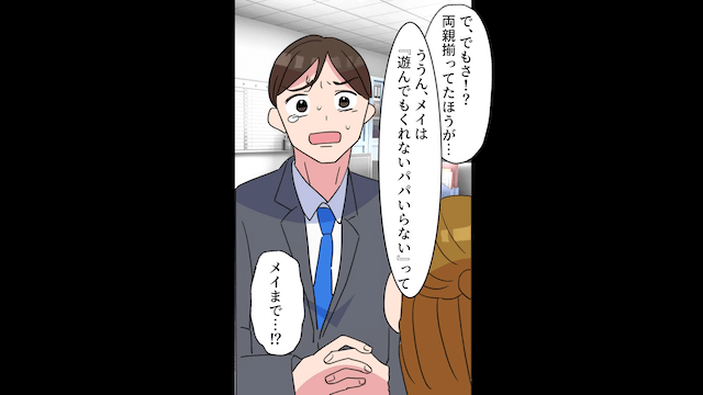 主人公に離婚を突きつけられた夫は「両親は揃ってたほうが…」と言いますが、娘もすでに夫に愛想を尽かしていました。 そして主人公は、絶望する夫に「地獄に落ちるなら1人でどうぞ」と告げたのです。