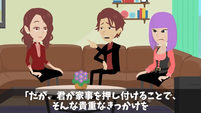 義父は、姉が義兄に家事を押しつけることで、昇進の機会を奪いかねないと言います。 さらに義父は「自分の夫のキャリアを奪っているという自覚がないのか?」と姉に尋ねました。
