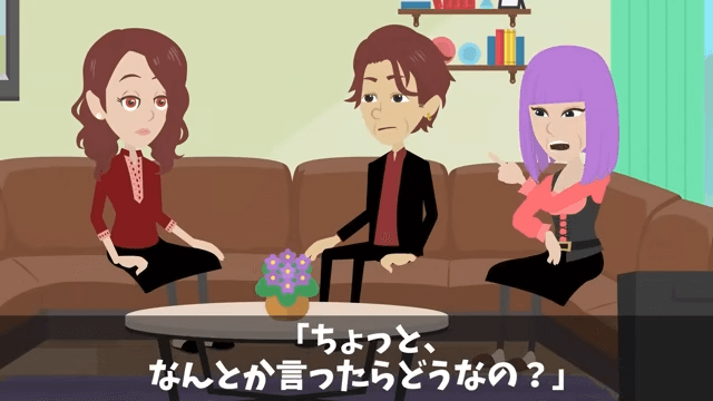 義両親の言葉に不満を持った姉が黙っていると、義母が「ちょっと、なんとか言ったらどうなの?」と迫ってきました。 するとそこに義兄が戻ってきて、義両親に「まさか…彼女に何か言ったわけじゃないよな?」と尋ねたのです。