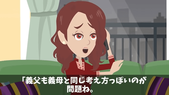 姉は、義両親とどんなやりとりがあったのかを主人公に伝えました。 そして姉は「義父も義母と同じ考え方っぽいのが問題ね」と言い…。