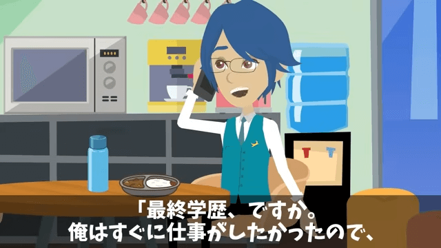 義父は主人公に「これが一番大切な質問なんだけど。最終学歴は?」と尋ねました。 それに対し主人公は「俺はすぐに仕事がしたかったので、高校には行っていないんですよ」と答えて…。