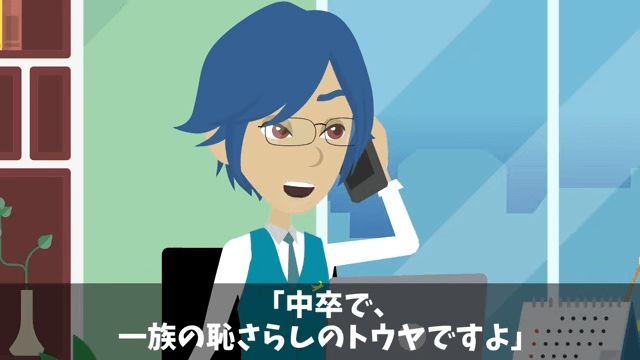 今回は『義父「中卒は結婚式来るな」義母「一族の恥」⇒俺「後悔するなよ」翌日、正体を明かした結果』を紹介します。 社員からグループの社長の電話番号を聞いた義父は、さっそく電話をかけました。 そして本当に主人公が社長なのだと知った義父は「ま、まさか…」と驚いて…。