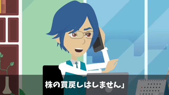 義父は「顔向けだとか、そんなことはどうだっていいんですよ!」と身勝手なことを言い出しました。 すると主人公は「そんな人にはなおさら任せられませんね」と言い、条件を飲めないなら株の買い戻しはしないと宣言したのです。