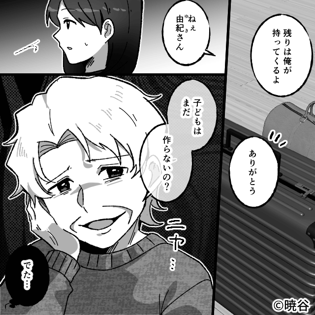 さらにニヤニヤしながら「子どもはまだ作らないの?」とも言われ、主人公は義実家に到着した途端に疲れてしまうのでした。