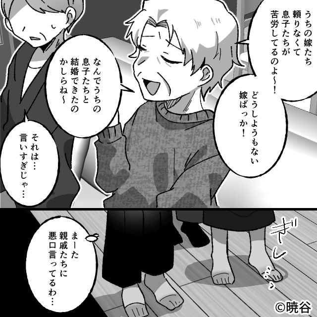 今回は『帰省中、嫁いびりする義母を“撃退”した話』を紹介します。 自分の息子3兄弟の妻たちが気に入らず、毎年イヤミを言ってくる義母。 親戚たちの前で「もうすっごい困っちゃって〜」と嬉しそうに話し始めた義母は…。