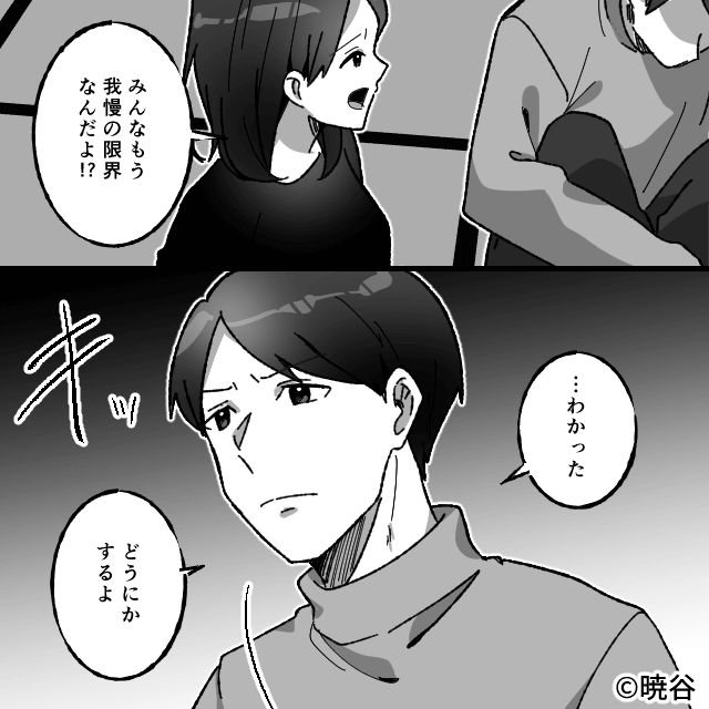 その日の夜、主人公含める3人の妻は、夫たちに義母の嫁いびりを相談します。 主人公たちが不満を打ち明けると、夫は「どうにかするよ」と言い、協力を約束してくれたのでした。