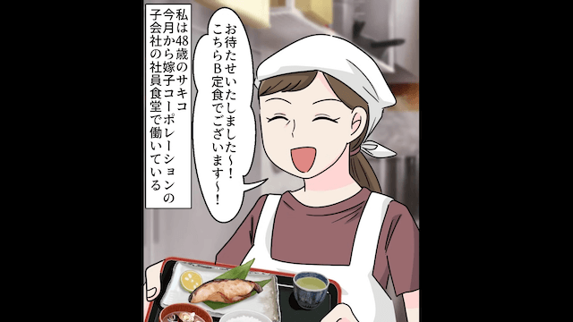 今回は『社員食堂で…社員「使えないな、おばさん!」私「クビね」直後⇒私の【正体】を明かした結果』を紹介します。 今月から、子会社の社員食堂で働き始めた主人公。 同僚たちは優しい人ばかりで、主人公は楽しく働いていたのですが…。