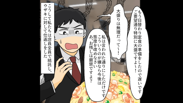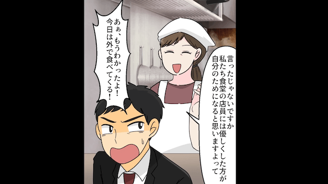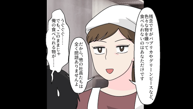 今回は『社員食堂で…社員「使えないな、おばさん!」私「クビね」直後⇒私の【正体】を明かした結果』を紹介します。 クレーマーの男性社員に、痛い目を見せることにした主人公。 今月の献立に男性社員の苦手な食材ばかりを使うと、男性社員は怒り出して…。