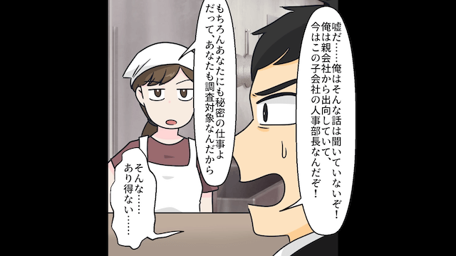 今回は『社員食堂で…社員「使えないな、おばさん!」私「クビね」直後⇒私の【正体】を明かした結果』を紹介します。 親会社からやってきた主人公を左遷されたと決めつけ、バカにする男性社員。 主人公が否定するも、男性社員は信じようとせず…。