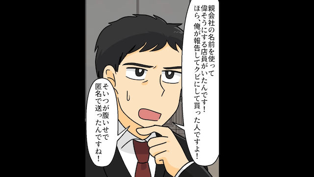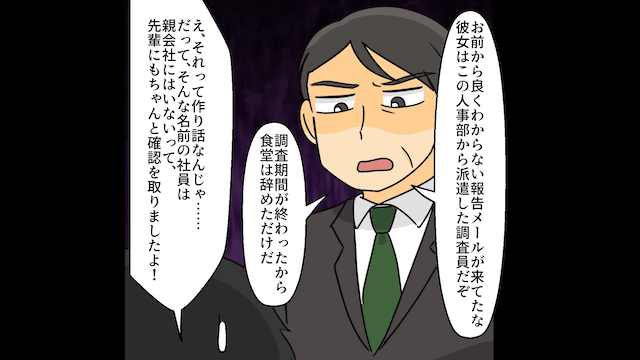 今回は『社員食堂で…社員「使えないな、おばさん!」私「クビね」直後⇒私の【正体】を明かした結果』を紹介します。 親会社に呼び出された男性社員は、昇進の話だと思い込んで大喜びで向かいました。 しかし部長に、食堂での迷惑行為について問い詰められて…。