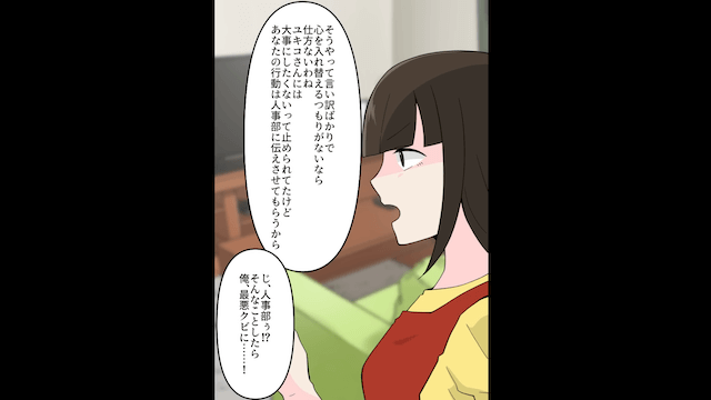 実は主人公のもとに夫が後輩の女性社員に言い寄っているという報告が届いており、主人公はこのことを人事部に伝えようと考えていて…。
