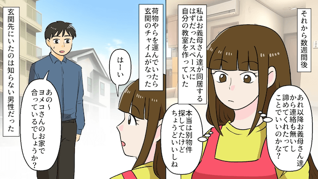 主人公は義姉に「お金あるみたいだし同居は無理ですよ」と告げ、夫は義姉を擁護するなら義両親とも同居しないと宣言しました。 そして主人公夫婦は同居の話自体を白紙にしたのです。
