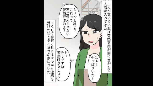 管理のために家に訪れた友人は、主人公夫婦と警察を呼んだのでした。