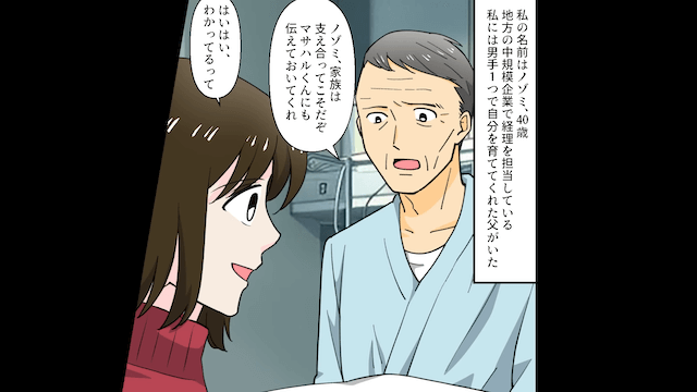 今回は『浮気旅行で事故を起こした夫「俺の介護は嫁の仕事!」→妻「もう家族じゃないけど?」夫「え?」』を紹介します。 男手ひとつで育ててくれた父が入院し、お見舞いに来ていた主人公。 父は「家族は支え合ってこそだぞ」と口癖のように言い…。