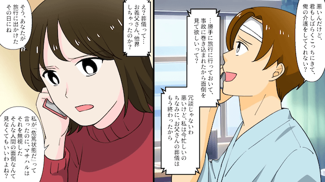 浮気旅行で事故を起こした夫「俺の介護は嫁の仕事!」→妻「もう家族じゃないけど?」夫「え?」#3