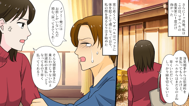 今回は『浮気旅行で事故を起こした夫「俺の介護は嫁の仕事!」→妻「もう家族じゃないけど?」夫「え?」』を紹介します。 主人公に突き放され、浮気相手に再婚を迫った夫。 しかし浮気相手に「お金をくれる代わりに寂しがっているあなたの相手をしてあげてたの」と言われてしまい…。