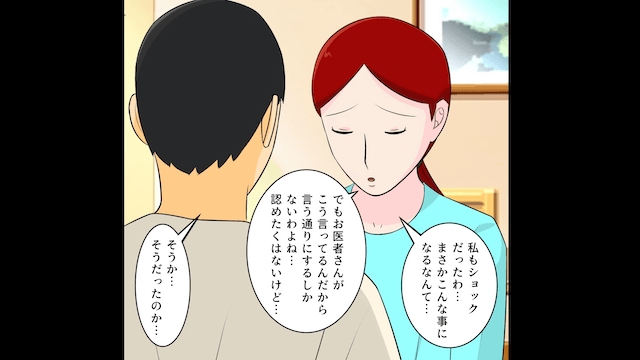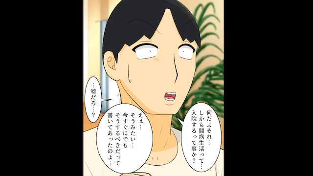ある日、健康診断の結果を確認した主人公は、夫に「これから闘病生活になりそうなのよ…」と報告しました。 すると夫も「嘘だろ…?」とショックを受けた様子で…。