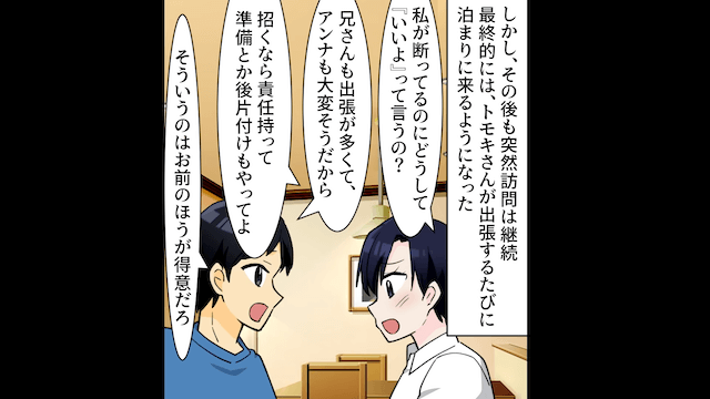 今回は『兄嫁「突然だけど1週間だけ子どもと泊まるね(笑)」私「外泊するね」⇒そのまま永遠に帰らなかった結果』を紹介します。 夫と義兄嫁は、主人公と義兄に注意されても言い訳を繰り返していました。 そこで主人公が「両家のご両親にも意見を聞いてみましょうか」と提案すると、2人は焦って謝罪をしてきたのです。