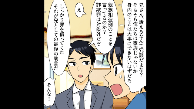 有頂天になっている夫に、共有財産を勝手に売った罪で訴えると宣言した主人公。 さらに義兄も、義両親からお金をだまし取った罪で夫を訴えると告げました。
