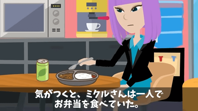 新人がまったく話を聞こうとしないため、社員たちは呆れた表情を浮かべました。 その後、新人は1人で弁当を食べるようになり…。