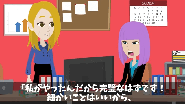 主人公は新人が作った資料の問題点を新人に伝えました。 しかし新人は「私がやったんだから完璧なはずです!」と言い、話を聞こうとしません。