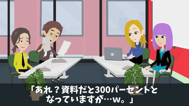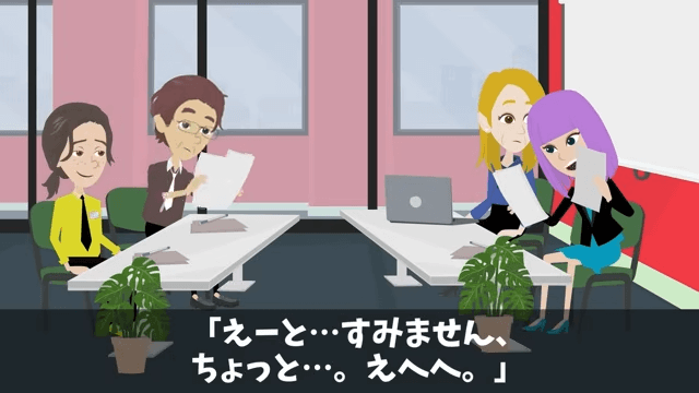 プレゼンが始まると、新人はさっそく取引相手から資料の間違いを指摘されました。 すると新人は「えーと…すみません、ちょっと…えへへ」と笑ってごまかし…。