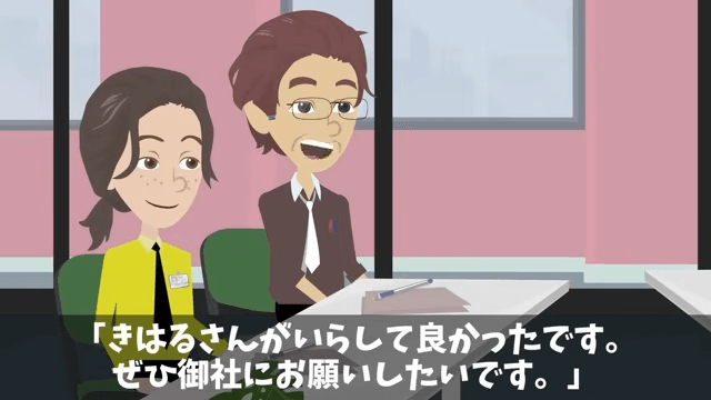 主人公のプレゼンを聞いた取引相手は「ぜひ御社にお願いしたいです」と言ってくれました。 それに対し主人公は「ありがとうございます!」とお礼を言います。
