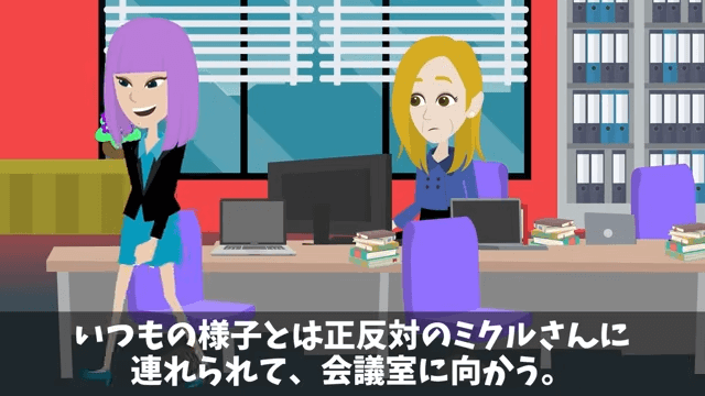 今回は『私を見下す新入社員「おばさんきつい(笑)」⇒「ここ誰の会社か知らないの?」』を紹介します。 プレゼンで主人公に助けられた新人は「私のほうが優秀なはずなのに」と落ち込みます。 しかしその後、新人は「あ、そっか!この手があった」とあることを思いつきました。