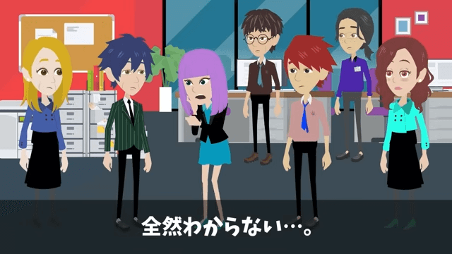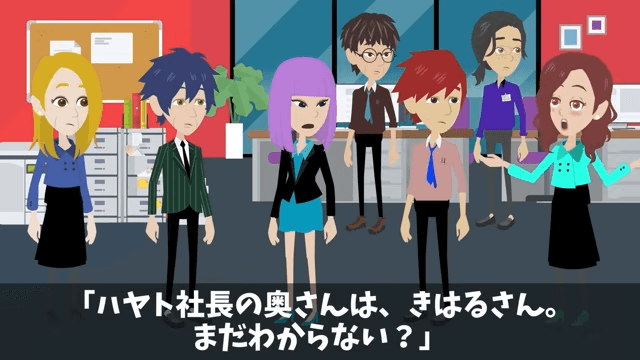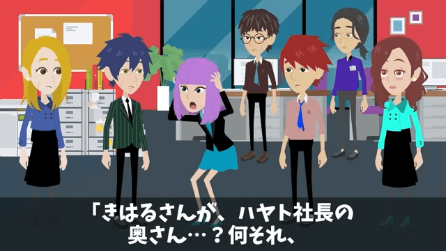 男性社員は不思議そうな顔をしている新人に、主人公が社長の妻であることを説明しました。 しかし新人は現実を受け入れられず「う、ウソだ、そんな…」と言って…。