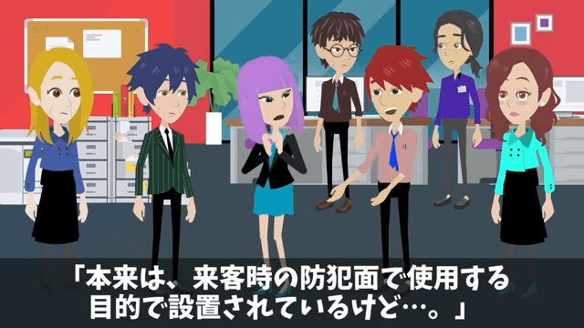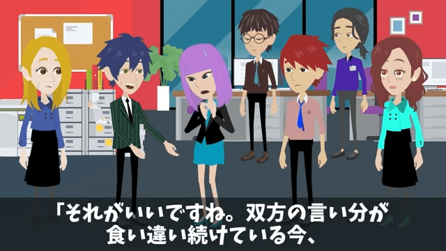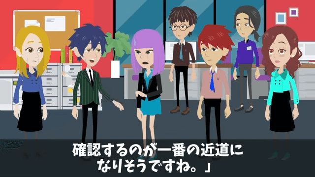 主人公と新人の言い分が食い違っていたため、女性社員は防犯カメラの映像を見てはどうかと提案しました。 すると社長が「確認するのが一番の近道になりそうですね」と言い、女性社員の提案に賛成したのです。