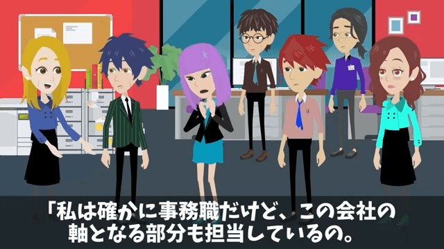 社長は主人公が自分の妻であるだけでなく、共同経営者であることを新人に明かしました。 それを聞いた新人が「共同経営者?でも、事務職なんじゃ…」と言うと、主人公は事務職をしながら会社の軸となる部分も担当していたのだと説明して…。