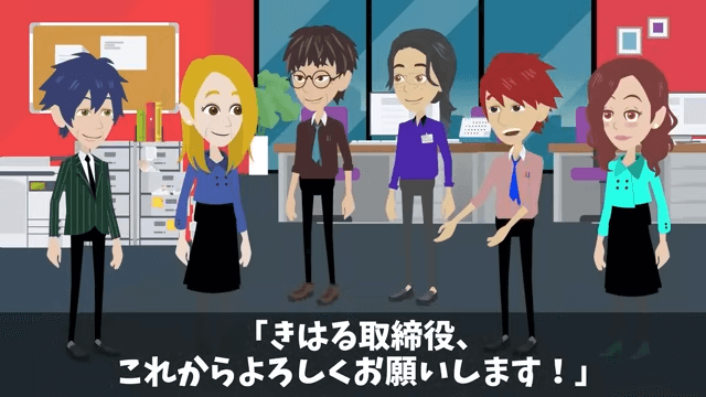 今回は『私を見下す新入社員「おばさんきつい(笑)」⇒「ここ誰の会社か知らないの?」』を紹介します。 主人公は以前プレゼンをした取引相手から、定期的に超大型のプロジェクトをもらえるようになりました。 その結果、主人公は取締役に就任することになり、みんなに祝ってもらって…。