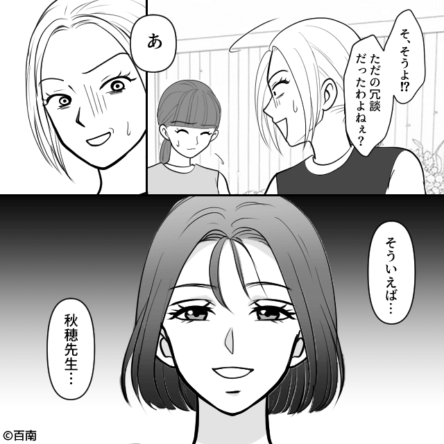 同僚が別の先生に向かって、主人公の悪口を言っている場面を目撃した主人公。 同僚は言いたい放題で、主人公を見下すように笑っています。
