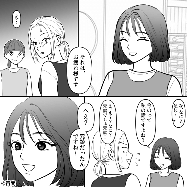 その様子を見た主人公が話しかけると、同僚は「冗談でしょ」とごまかしたのでした。