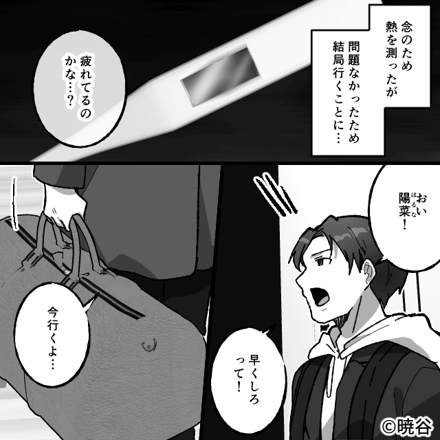 義実家に行く予定の日に体調を崩してしまい、ソファに横たわる主人公。 しかし夫は心配をするどころか、主人公を責めてきます。