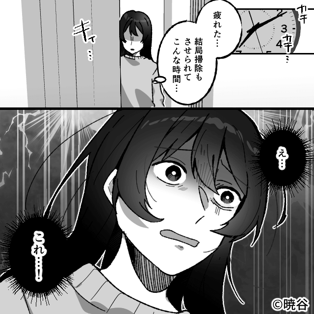 義実家到着後、顔色の悪い主人公を見てクスクスと笑う義母。 そして義母は「今日はあなたの大好物も用意しておいたわよ」とニヤリと笑ったのでした。