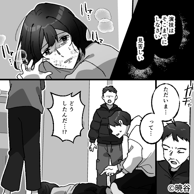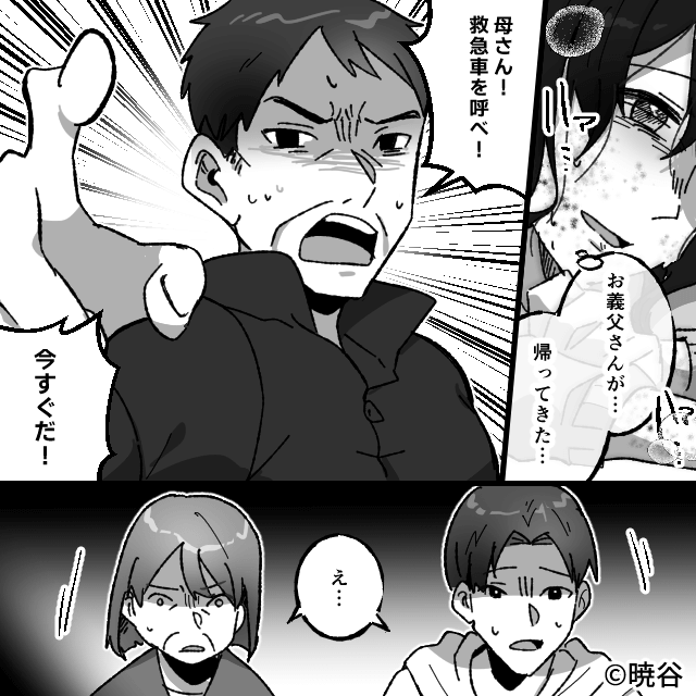 主人公は絶望するのですが、そこへ義父が帰宅し、救急車を呼んでくれたのでした。