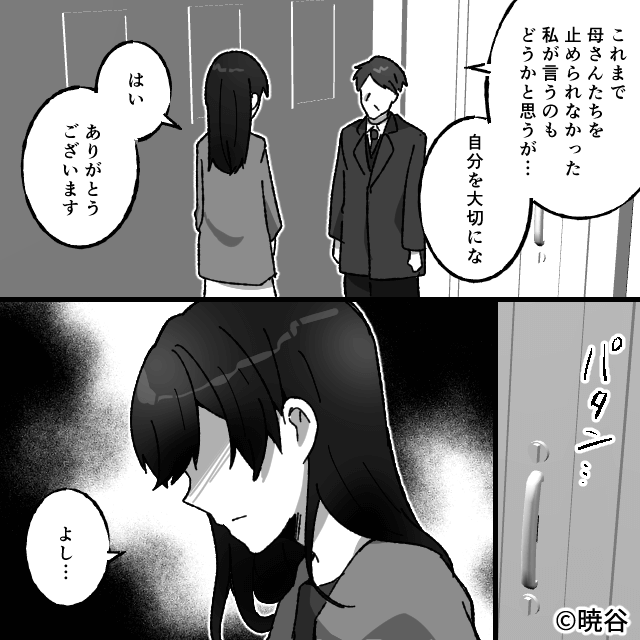 数日後、家にやってきた義父は主人公に頭を下げます。 そして「必要なら私が証言しよう」と主人公に協力をしてくれると言いました。
