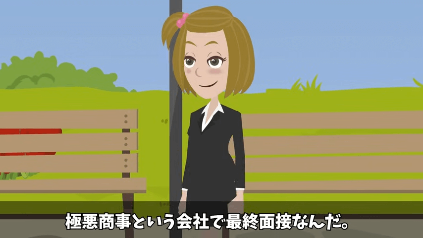 主人公は父の仏壇に手を合わせてから、元気よく家を出ました。 この日は主人公にとって大本命の会社の最終面接で…。