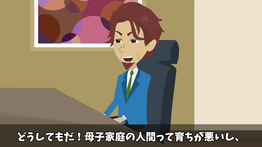 今回は『採用面接で母子家庭が理由で不合格になった私。しかし後日⇒会社で再会した結果』を紹介します。 何を言っても堪えない主人公に対し、女性社員は絶対に不採用にしなければならないと考えます。 専務はそんな女性社員に、主人公を不採用にする理由がないと言いますが…。