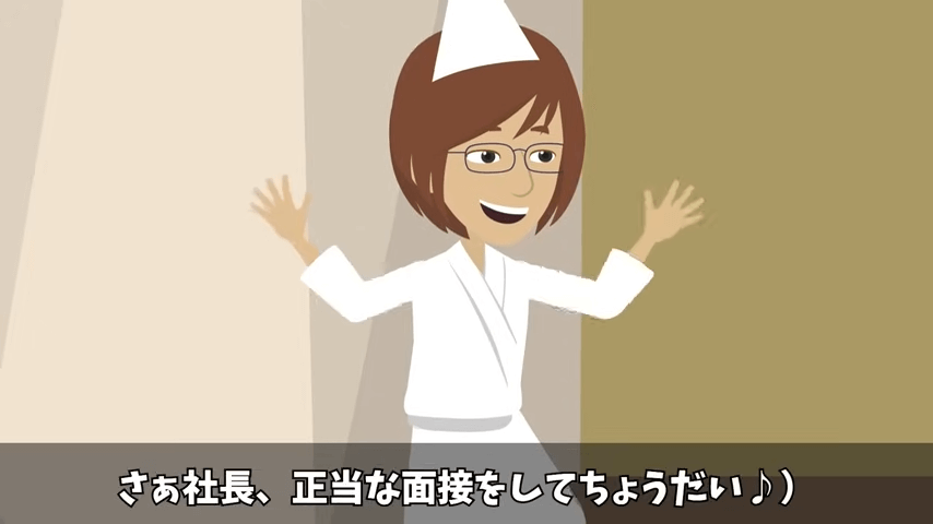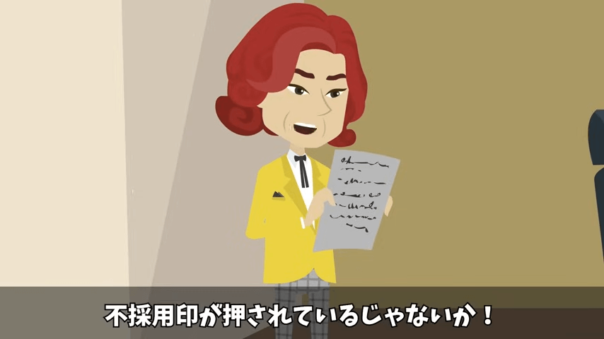社長が来たため、父はこれで主人公が正当な面接を受けられるはずだと期待しました。 そんな中、社長は専務と女性社員が主人公を不採用にしたことに気がつき…。