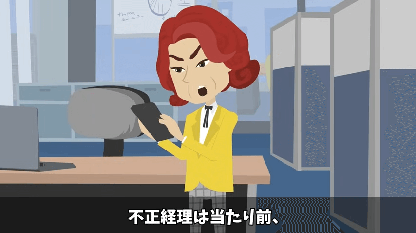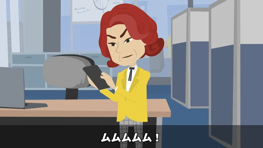 専務が株価が下がったのは社長のせいだと言うと、社長は「どういう意味だ!?」と言いました。 そこで女性社員は、社長の評判を示すSNSの投稿を社長に見せたのです。