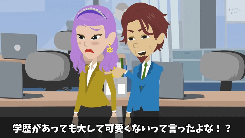 専務は主人公が社長になるのは無理だと決めつけ「学歴があっても大してかわいくないって言ったよな!?」と言いました。 それに対し主人公は「えぇ、しっかりと覚えていますよ」と答えて…。
