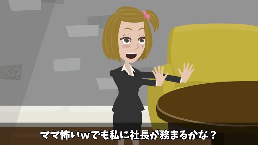 母は主人公が会社の新しい社長になり、今の社長たちに仕返しをするようにと言いました。 それを聞いた主人公は「私に社長が務まるかな?」と心配しますが…。